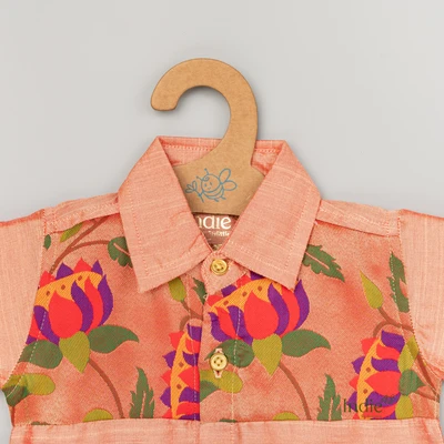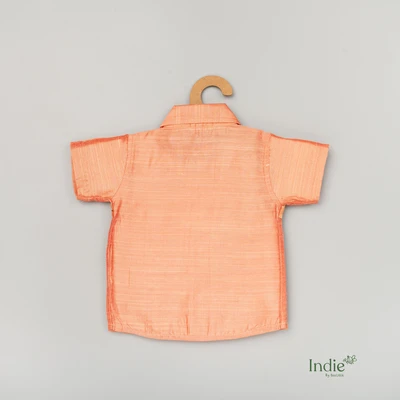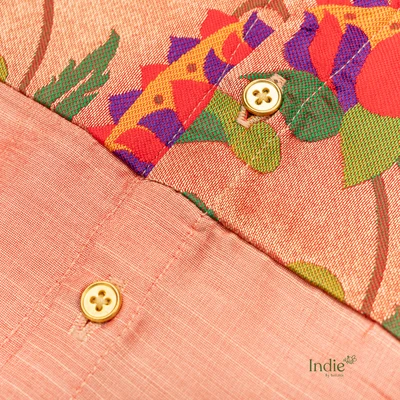 Peach Raw Silk Shirt with Paithani Patch