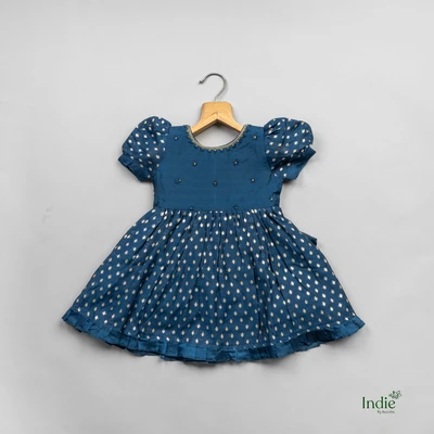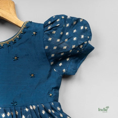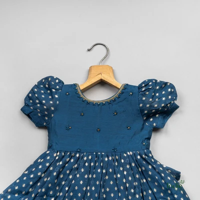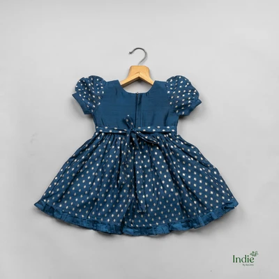 Peacock Green Puff Sleeve Fancy Dress With Tie-Back