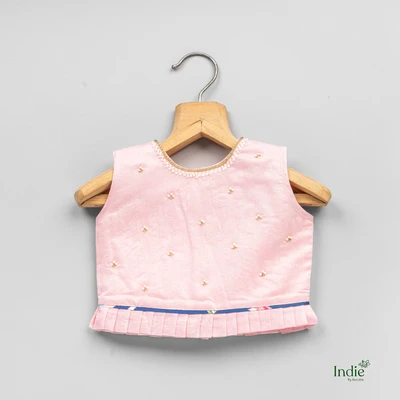 Pearl Butta Embroidered Baby Pink Top And Pleated Lehenga With Dupatta