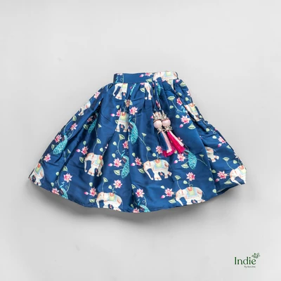 Blue Floral Rose Printed Skirt And Pleated Lehanga