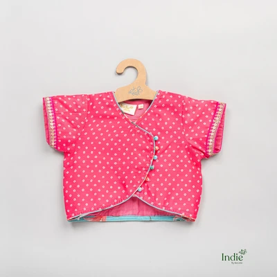 Triangle Embroidered Megenta Top And Pleated Lehenga