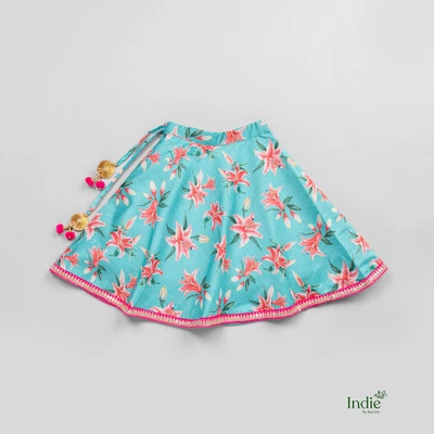 Blue Floral Rose Printed Skirt And Pleated Lehanga
