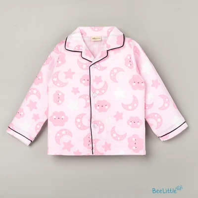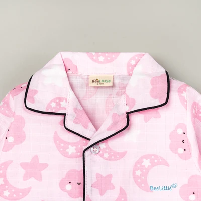 Our Pyjama sets offer comfort and style for your little one's restful night's sleep. Each set includes a short-sleeve button-up top with a classic collar and chest pocket, finished with contrasting piping. The matching pants feature an elastic waistband and piped cuffs. Made from soft, breathable fabric, they are gentle on baby's skin and are perfect for year-round wear.
