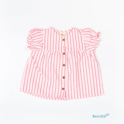 Solid Co-ordinate set of woven designed top & shorts. Figured with gathered yoke line seam, puff-sleeves cuffed with trouble-free elastication and front open neckline fastened with buttons. Coupled with regular shorts of concealed elastication and slip on closure.