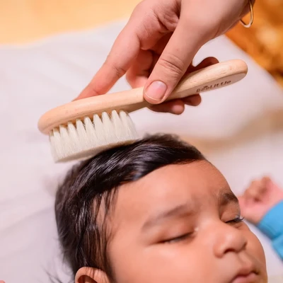 Who wouldn’t love the shiny lustrous hair of a newborn baby? Babies are born with very thick to no hair, which tends to change as they grow up. Thick hair or not, brushing is one of the most beneficial things you can do for their fresh hair! Delicate brushing of newborn hair helps them relax and promotes healthy blood flow on their scalp while also helping with cradle cap conditions. But, a newborn’s head is the most delicate part that needs to be handled with utmost care. Not every brush can be soft and smooth on them, especially on the ‘soft spot’ on the baby’s head. This is why, Beelittle brings you the most soft-bristled, wide-toothed combo of natural goat hairbrush with a premium quality wooden comb. Your search for the safe and perfect newborn hair grooming essential ends here.