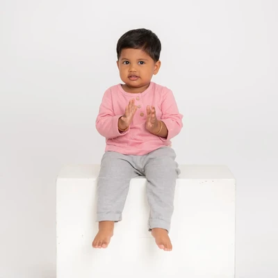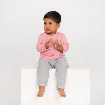 Our gender-neutral wide fit t-shirt is designed with a relaxed fit around the belly, allowing your baby to move freely and comfortably without any tightness or discomfort. Made from soft cotton and featuring full sleeves and a playful popcorn texture, it's a comfortable and trendy choice for your little one.