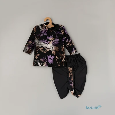 Golden Butta Embroidered Taupe Short Kurta With Dhoti
