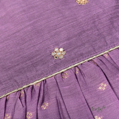 Purple Floral Emberoided Cap Sleeve Tie Up Frock