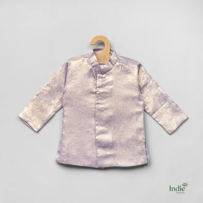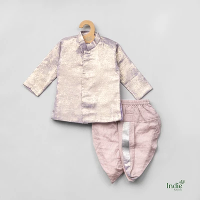 Purple Silk Metallic Tissue Kurta With Dhoti