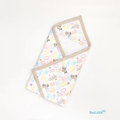 Wrap your newborn in the softest and gentlest of cotton with this comforting wrap bed. Its all-over printed outer surface and hooded top create a soothing and nurturing environment, curated with 12 layers of organic cotton to provide the ultimate comfort for your little one. Give your baby the warmth and security they need to feel loved and cherished as they explore the world.