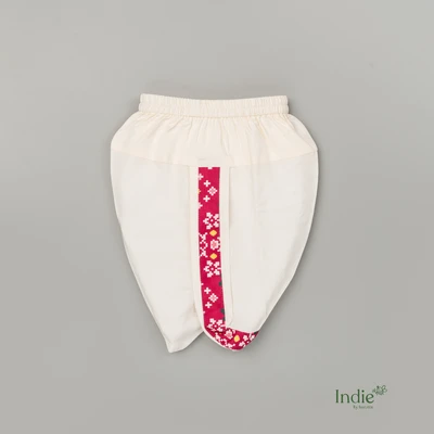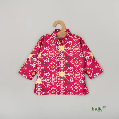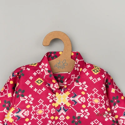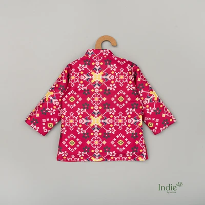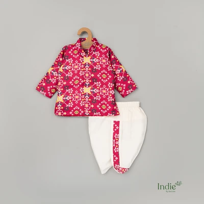 Vertical Embroidered Mirrorwork Dark Pink Short Kurta with Dhoti
