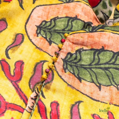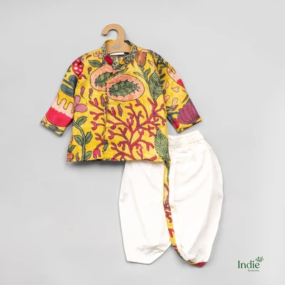 Red Floral Printed Yellow Kurta With Dhoti