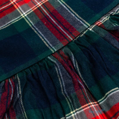 Flared frock has gathered waistline hem and straight button placket. The bodice of the dress is put together by printed fabric, an impeccable detailing self design fabric. Groomed up with a Peter-Pan collar in addition.