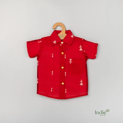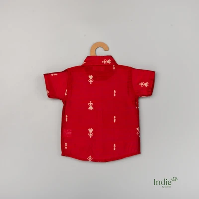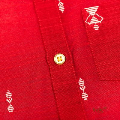Red Raw Silk Shirt with Doll Jacquard Butta