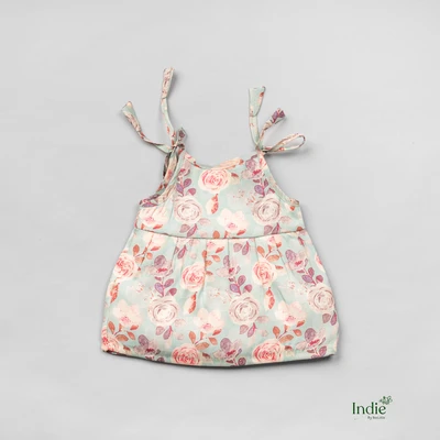 Rose Printed Teal Tie-Up Dress