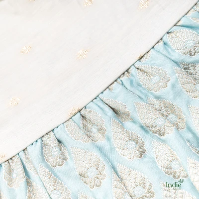 Black Embroidered Yoke With Floral Printed Blue Dress