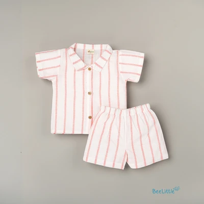 Muslin top and bottom set is the perfect blend of style and comfort. Featuring a Collar, half sleeves, and vibrant ethnic print, the shirt is made with soft and breathable Muslin fabric. The matching solid cotton shorts complete the look with a concealed elasticated waistband for a comfortable fit, creating an effortless outfit that's perfect for any occasion.