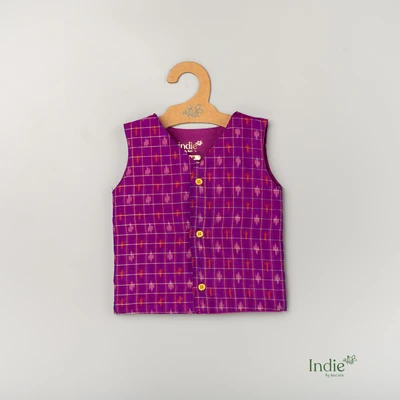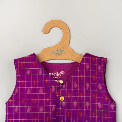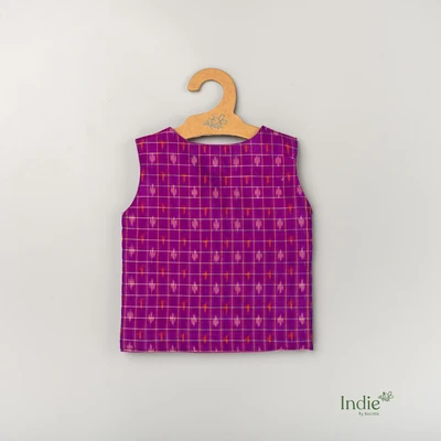 Violet Silk Ikkat V-Neck Jabla And Panjakajam