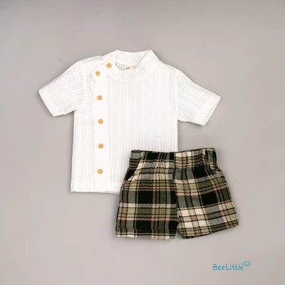 Beelittle side placket shirt and shorts set is a charming and practical outfit. Featuring a distinctive button-down side placket, making it easy to dress your little one. Crafted from soft, breathable fabric, this shirt ensures maximum comfort and freedom of movement. The elastic waistband shorts allow for quick diaper changes, making this versatile set both functional and adorable.