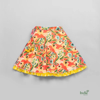 Pink Floral Printed Top And Orange Pleated Lehanga