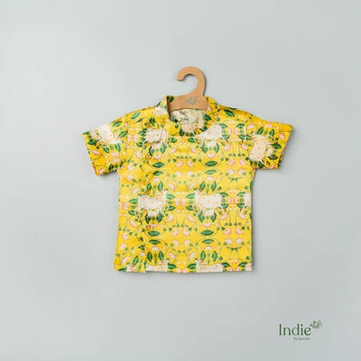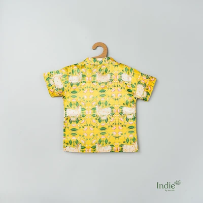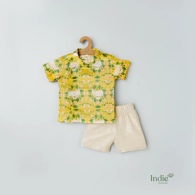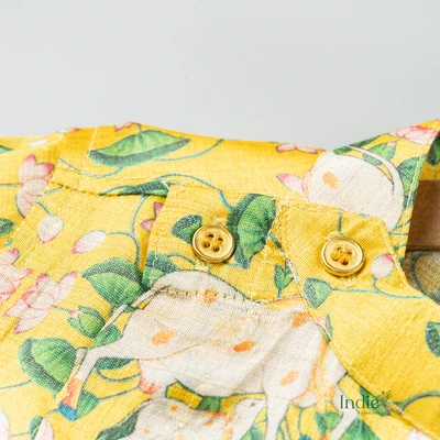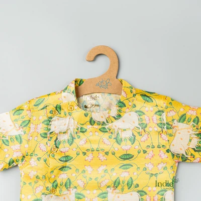 Yellow Pichwai Side Placket Shirt With Sandal Shorts