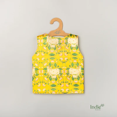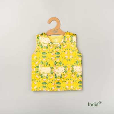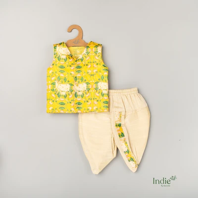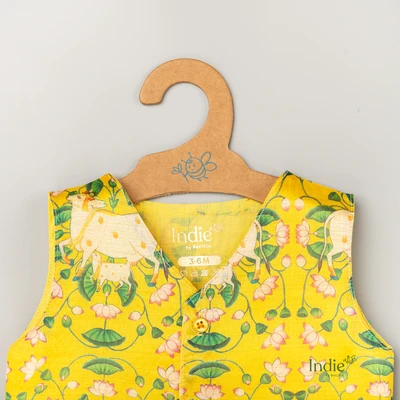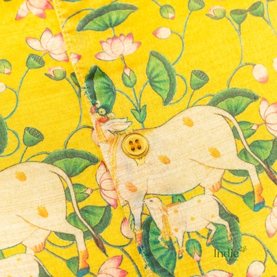 Yellow Pitchwai V-Neck Jabla And Panjakajam