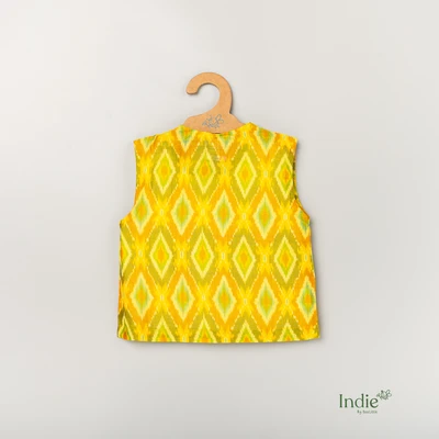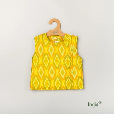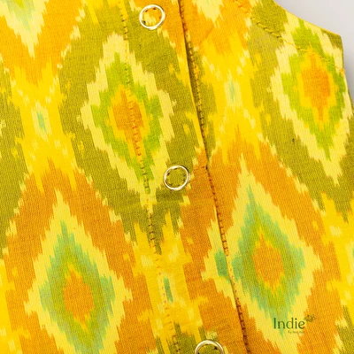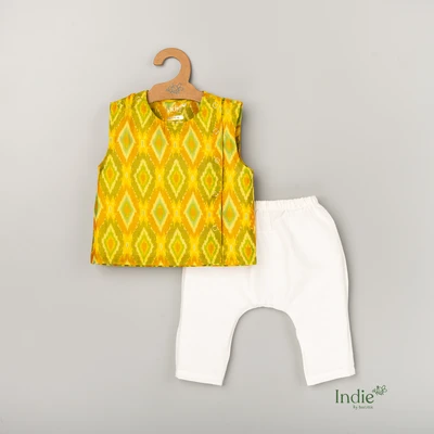 Yellow Sico Ikkat Jabla With White Pant