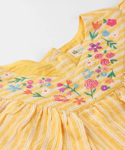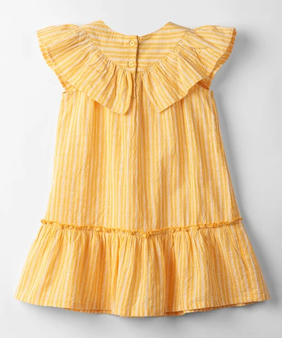What's a baby outfit without a touch of adorable flair? Our woven frill frock comes adorned with charming frills, adding a whimsical charm that's simply irresistible. Whether it's a special occasion or a casual day out, this frock promises to make every moment as precious and adorable as your little one.