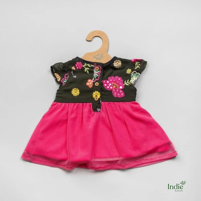 Black Embroidered Yoke With Floral Printed Blue Dress