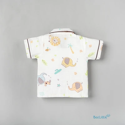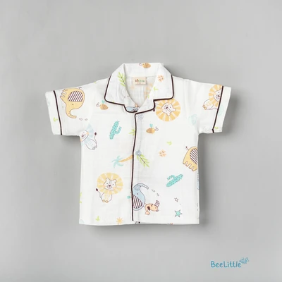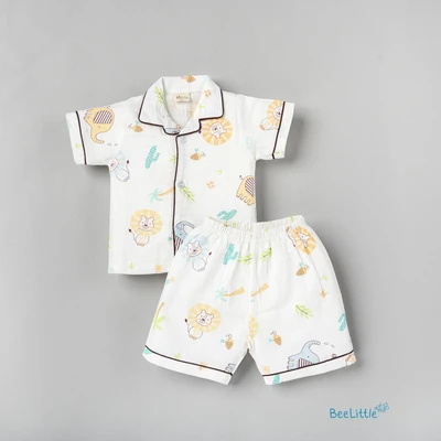 Our Pyjama sets offer comfort and style for your little one's restful night's sleep. Each set includes a Half-sleeve button-up top with a classic collar and finished with contrasting piping. The matching shorts feature an elastic waistband and piped cuffs. Made from soft, breathable fabric, they are gentle on baby's skin and are perfect for year-roundwear.