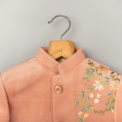 Golden Floral Printed Jacket With Scandal Kurta With Pant