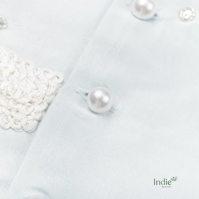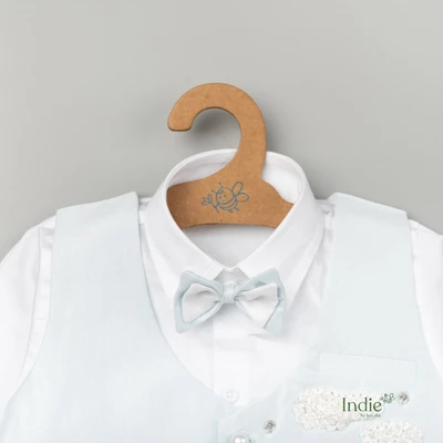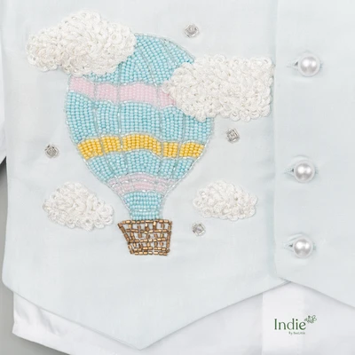 Cloudy Parachute Hand Embroidered With Bow Sky Blue Suit Set