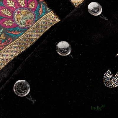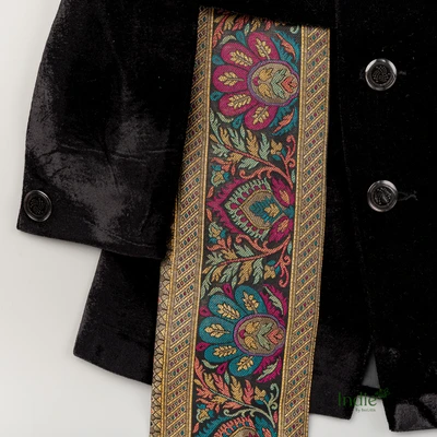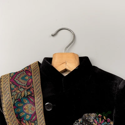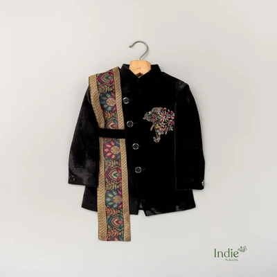 Colourful Floral Elephant Embroidered With Black Kurta And Beigh Pant With Floral Printed Dupatta