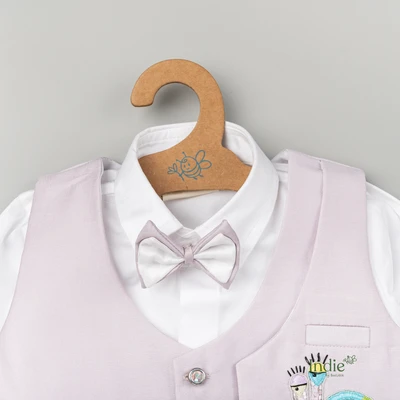 Colourful Snail Hand Embroidered With Bow Lavender Suit Set