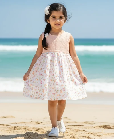 Embrace the warmth with our breezy woven frock. Crafted from a soft, woven fabric that's delightfully lightweight, it offers all-day comfort and keeps your little one cool on those balmy days. The sleeveless design allows for effortless movement and a touch of summer style. This versatile frock is perfect for the season.