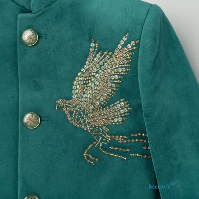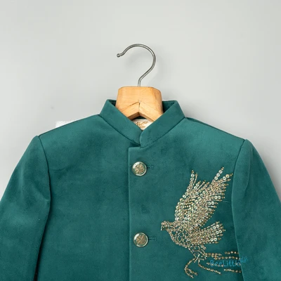 Golden Falcon Bird Embroided Green Kurta With Sandal Pant