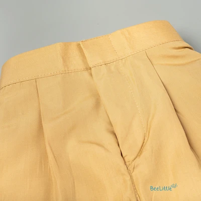 Green Leave Embroidered Gold Kurta With Beige Pant
