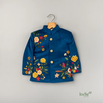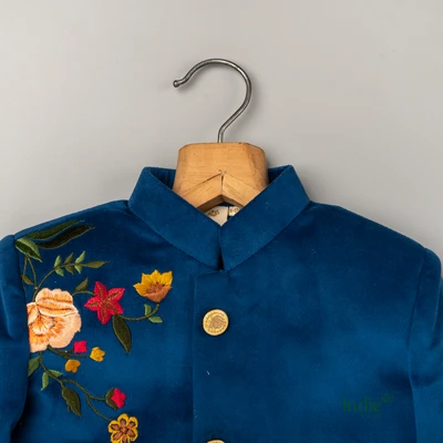 Multicolour Floral Embroidered Blue Kurta With Beige Pant