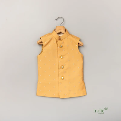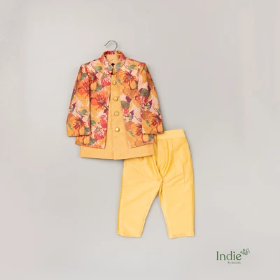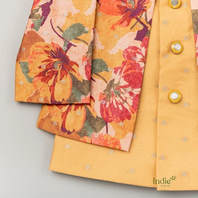 Golden Floral Printed Jacket With Scandal Kurta With Pant