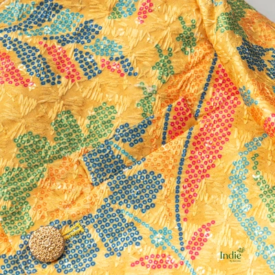 Green Leave Embroidered Gold Kurta With Beige Pant