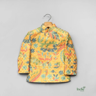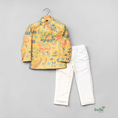 Golden Floral Printed Jacket With Scandal Kurta With Pant