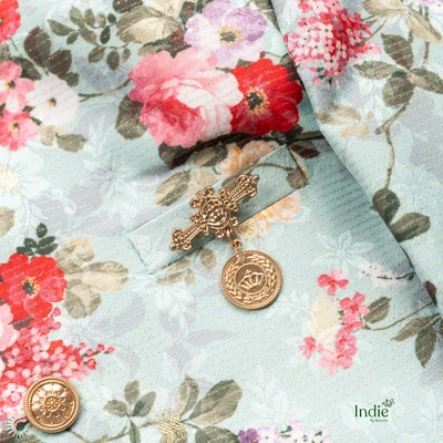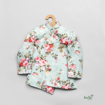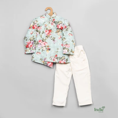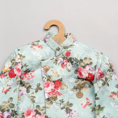 Golden Floral Printed Jacket With Scandal Kurta With Pant