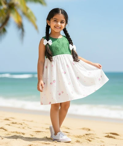 Embrace the warmth with our breezy woven frock. Crafted from a soft, woven fabric that's delightfully lightweight, it offers all-day comfort and keeps your little one cool on those balmy days. The sleeveless design allows for effortless movement and a touch of summer style. This versatile frock is perfect for the season.