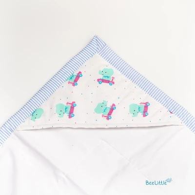 Wrap your newborn in the softest and gentlest of cotton with this comforting wrap bed. Its all-over printed outer surface and hooded top create a soothing and nurturing environment, curated with 12 layers of organic cotton to provide the ultimate comfort for your little one. Give your baby the warmth and security they need to feel loved and cherished as they explore the world.