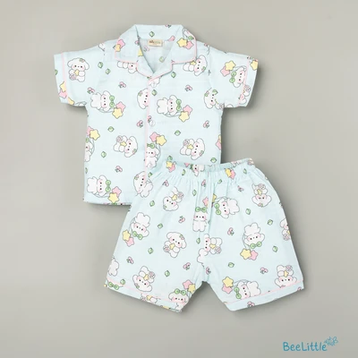 Our Pyjama sets offer comfort and style for your little one's restful night's sleep. Each set includes a Half-sleeve button-up top with a classic collar and finished with contrasting piping. The matching shorts feature an elastic waistband and piped cuffs. Made from soft, breathable fabric, they are gentle on baby's skin and are perfect for year-roundwear.