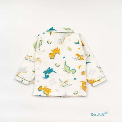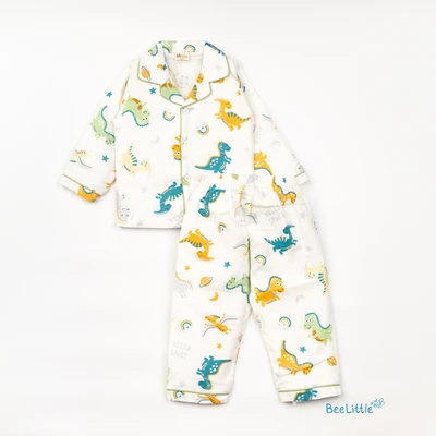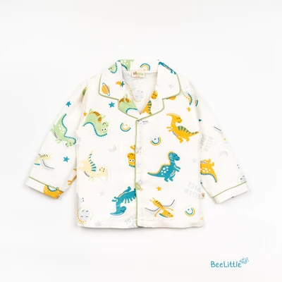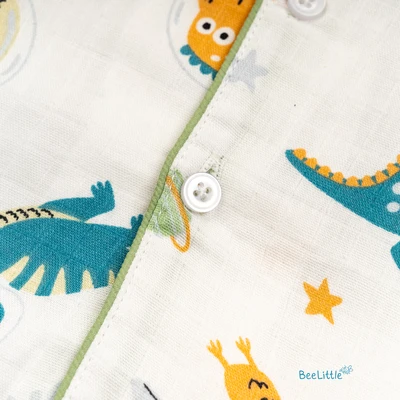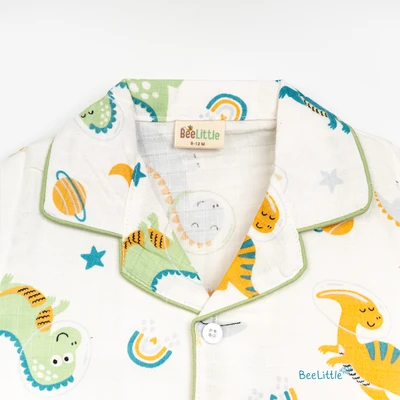 Our Pyjama sets offer comfort and style for your little one's restful night's sleep. Each set includes a short-sleeve button-up top with a classic collar and chest pocket, finished with contrasting piping. The matching pants feature an elastic waistband and piped cuffs. Made from soft, breathable fabric, they are gentle on baby's skin and are perfect for year-round wear.