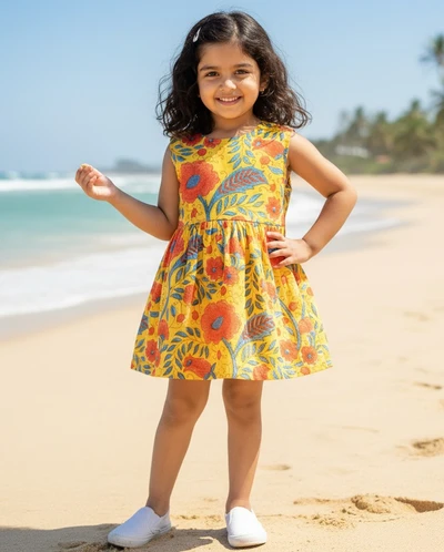 BeeLittle's sleeveless frock offers a blend of style and comfort for your little one.Featuring a classic round neckline and a gathered waist, it creates a flattering and playful silhouette. The dress is made from lightweight, breathable fabric, ensuring comfort throughout the day. Perfect for warm weather and special occasions, this frock allows for easy movement and keeps your child looking adorable and stylish.