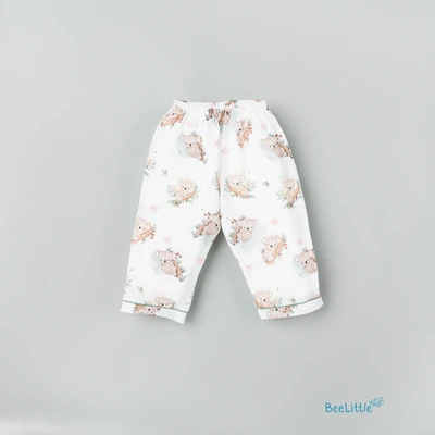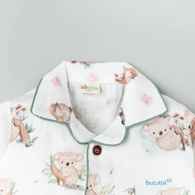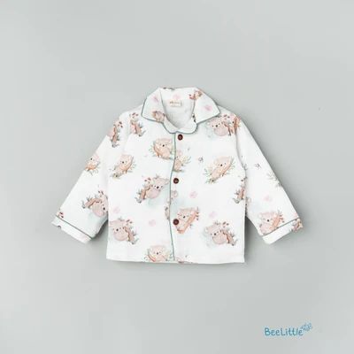 Our Pyjama sets offer comfort and style for your little one's restful night's sleep. Each set includes a short-sleeve button-up top with a classic collar and chest pocket, finished with contrasting piping. The matching pants feature an elastic waistband and piped cuffs. Made from soft, breathable fabric, they are gentle on baby's skin and are perfect for year-round wear.